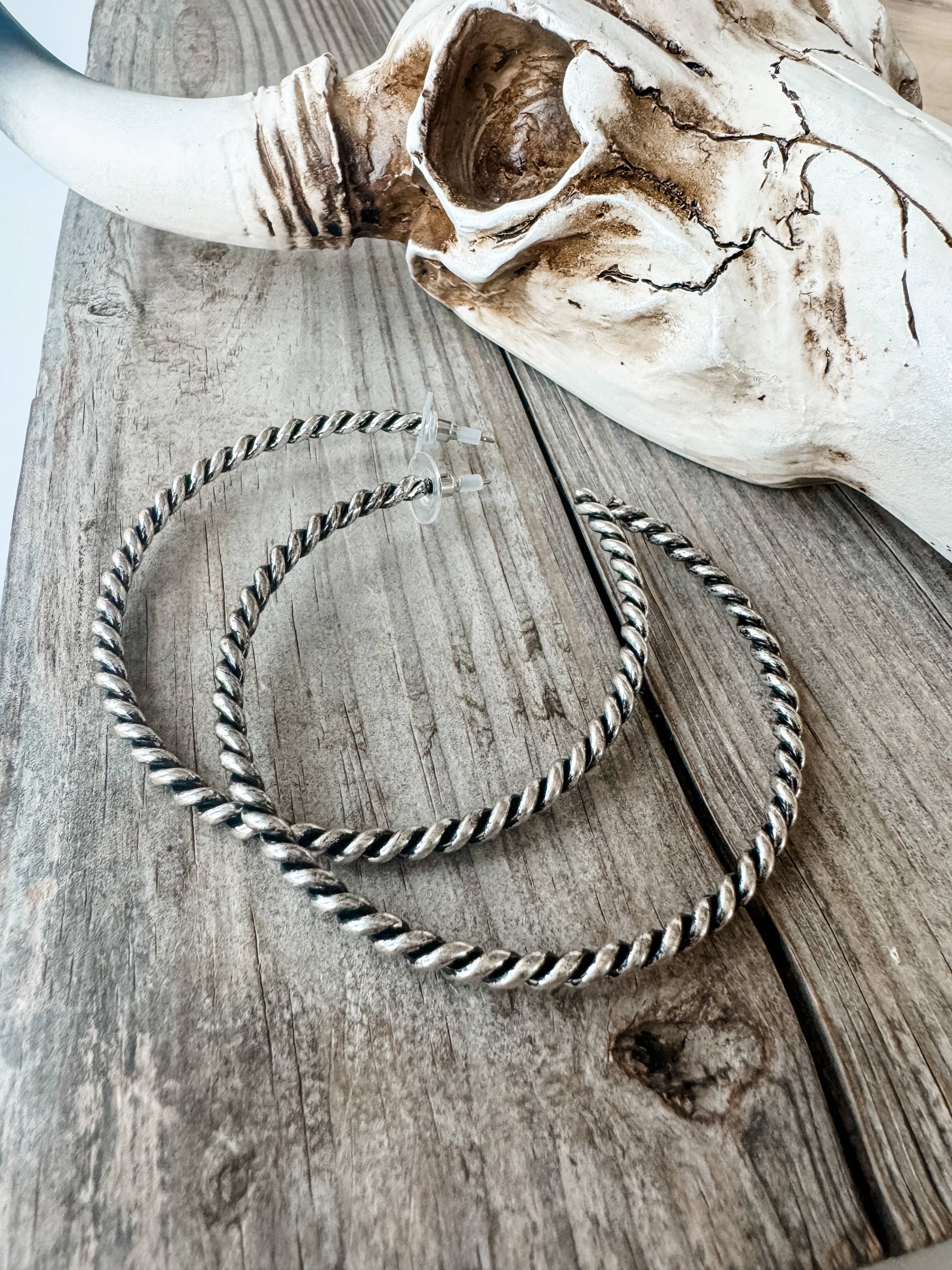 2.75” Rope Silver Hoop Earrings • Lightweight