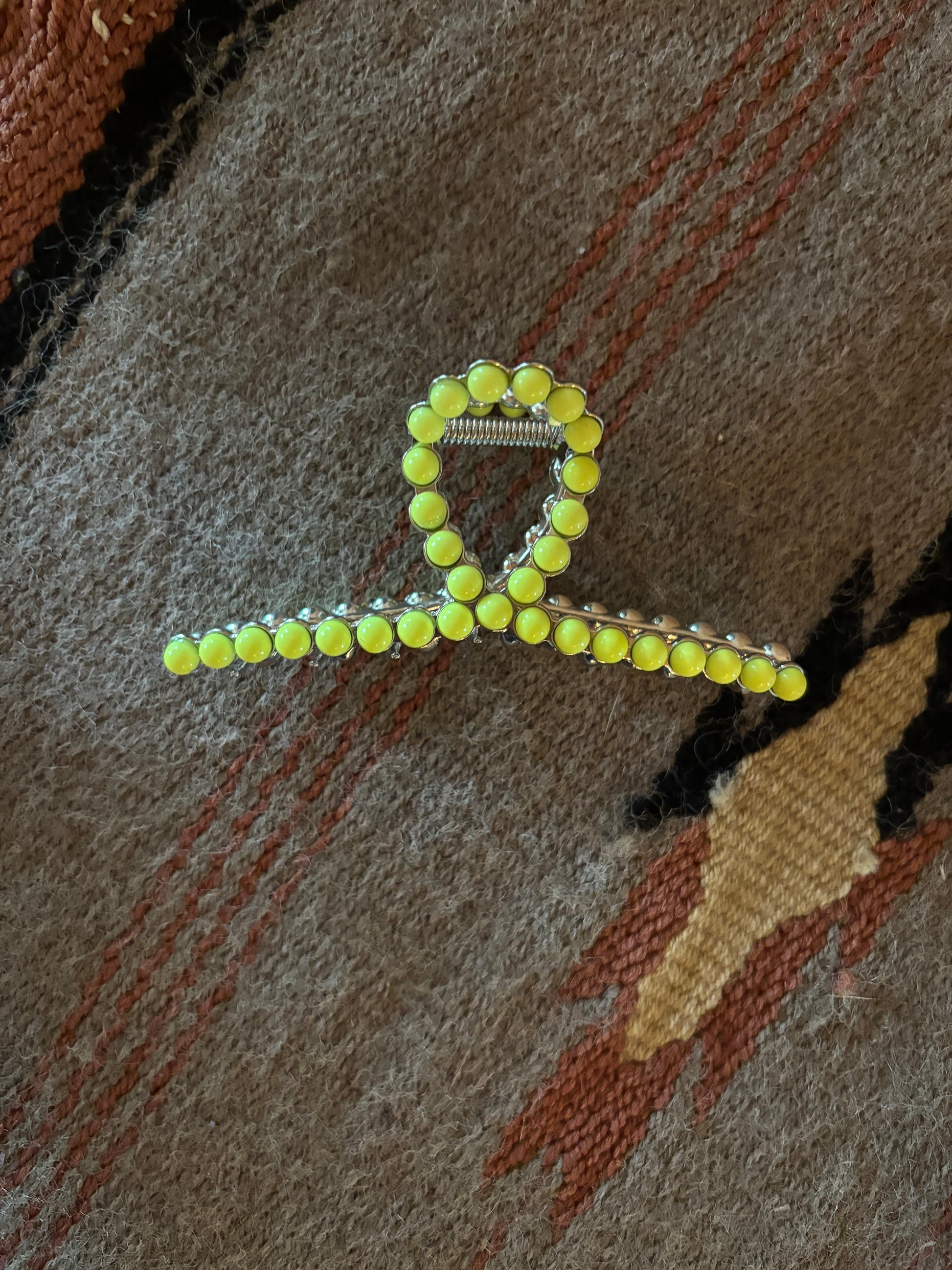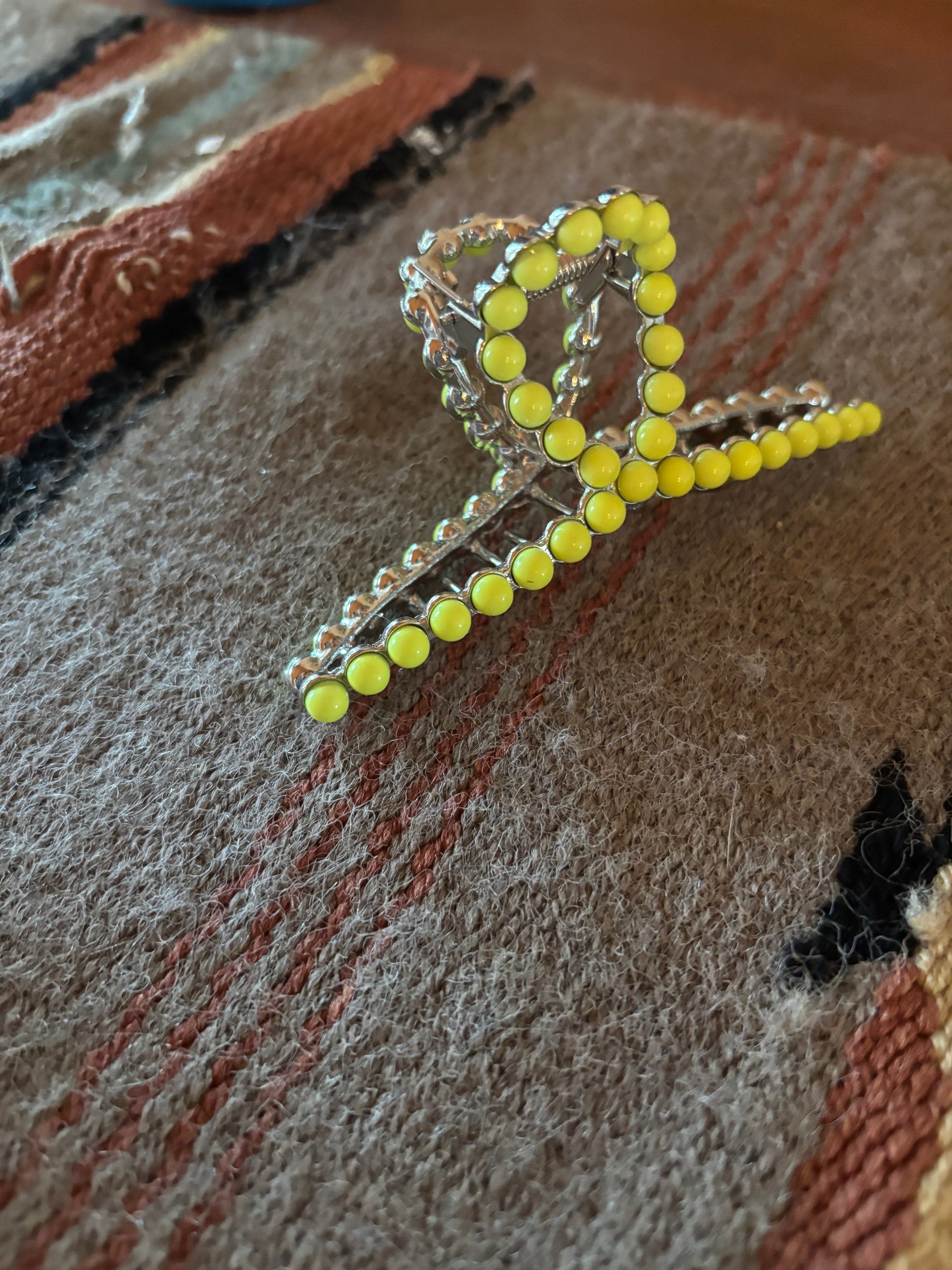 Metal claw clip with yellow stones